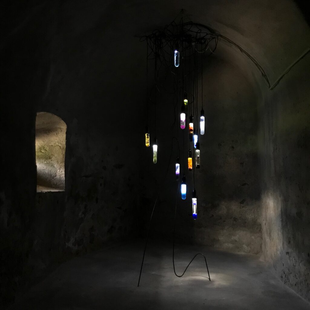 Lichtinstallation mit wachsenden Kristallen